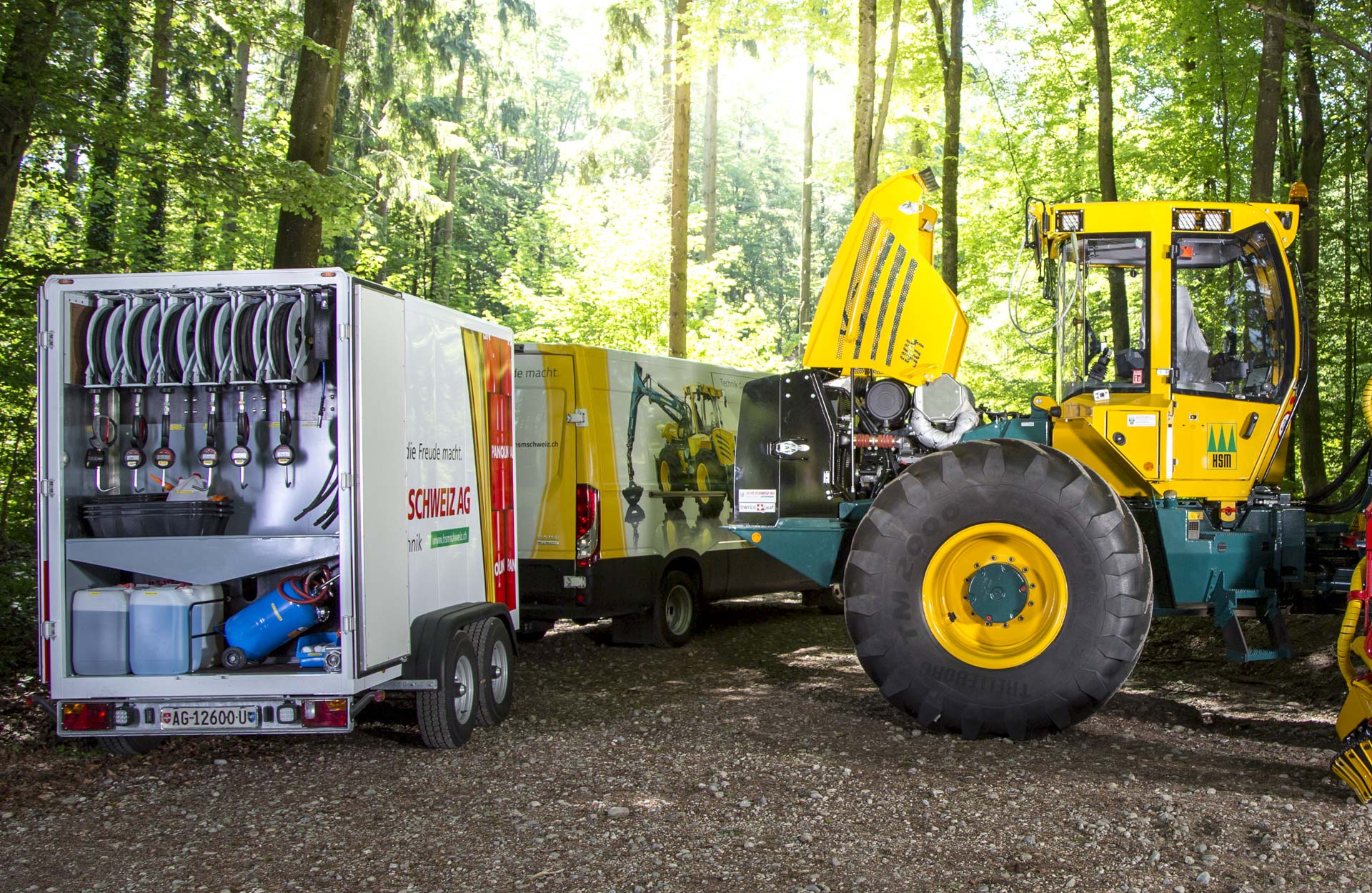 Mit unseren drei top eingerichteten Werkstattwagen und zwei Ölanhängern sind wir für Einsätze in der ganzen Schweiz bestens gerüstet. Die Werkstattwagen sind mit den gängigsten Ersatzteilen bestückt.